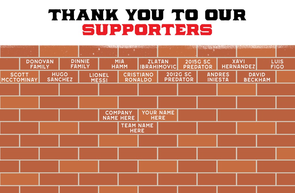 - Join our Wall of Fame by donating any amount below $500. We would like to acknowledge any and all contributions made. By donating, your name will appear on our wall of fame (seen below) which will be displayed throughout the year at our Youth Facility.